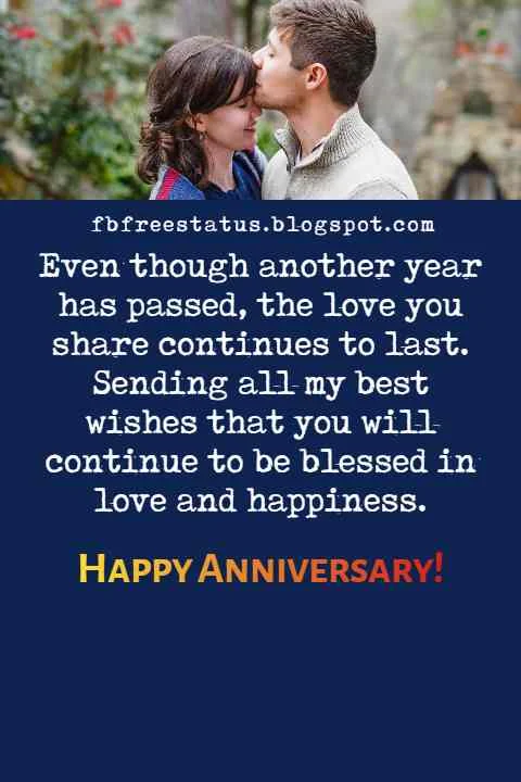 Even though another year has passed, the love you share continues to last. Sending all my best wishes that you will continue to be blessed in love and happiness.