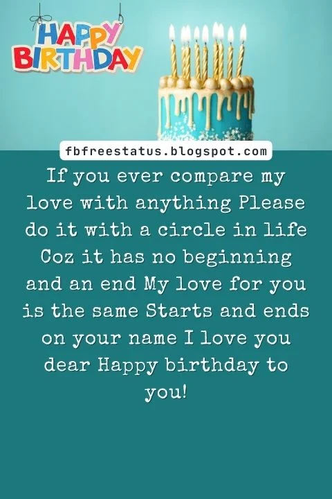 If you ever compare my love with anything Please do it with a circle in life Coz it has no beginning and an end My love for you is the same Starts and ends on your name I love you dear Happy birthday to you!