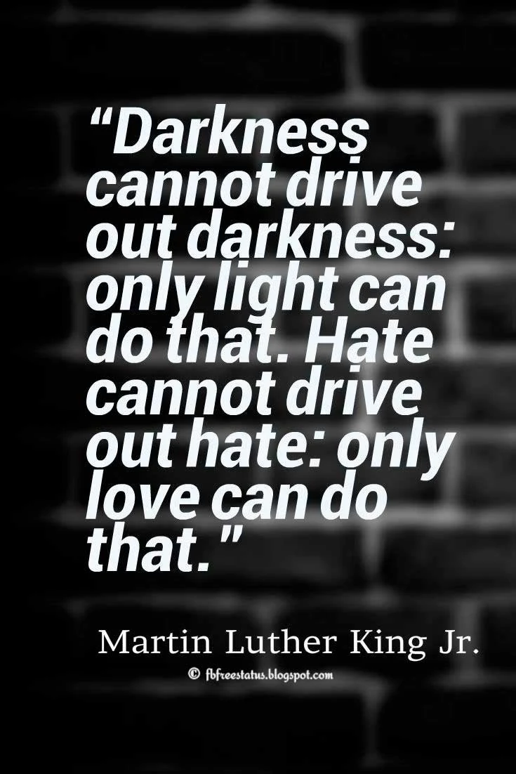 “Darkness cannot drive out darkness: only light can do that. Hate cannot drive out hate: only love can do that.”― Martin Luther King Jr.