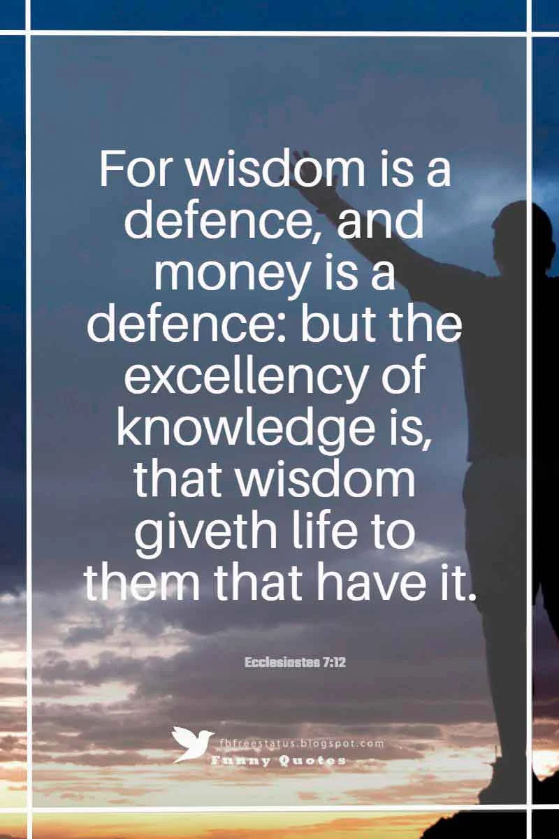 Wisdom Bible Verses, “For wisdom is a defense, and money is a defense: but the excellency of knowledge is, that wisdom gives life to them that have it.”― Ecclesiastes 7:12